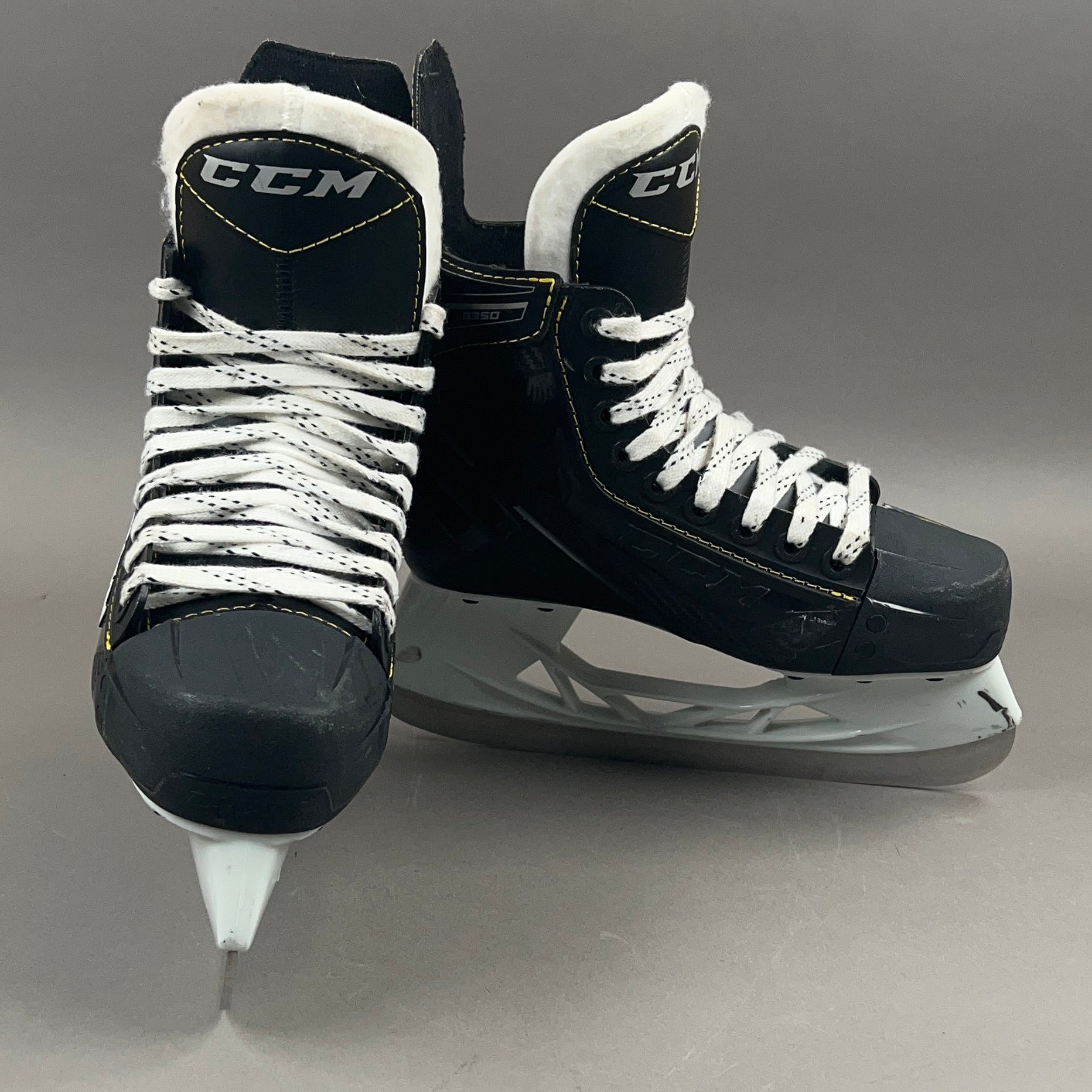 Elevate your ice hockey performance with the CCM Super Tacks 9350 skates, designed for players seeking comfort and durability. The 3D-injected boot offers a snug fit, enhancing stability and power transfer on the ice. A brushed microfiber liner ensures lasting comfort, while the 7mm felt tongue provides added protection. Equipped with pre-sharpened stainless steel blades, these skates are ready for action right out of the box. ([purehockey.com](